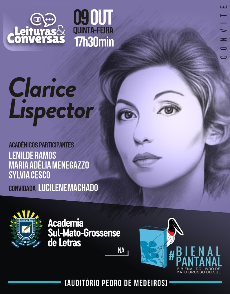 O projeto da ASL Leituras & Conversas a ser apresentado excepcionalmente na quinta-feira, dia 09, será no auditório Pedro de Medeiros, às 17h30, com a participação das acadêmicas Maria Adélia Menegazzo, Lenilde Ramos, Lucilene Machado e Sylvia Cesco, e a edição abordará a escritora Clarice Lispector ─ uma das vozes mais singulares e revolucionárias da literatura brasileira do século XX. Desenvolveu uma escrita marcada pela introspecção e pela busca da essência do ser. Ela desafiou convenções narrativas e criou uma linguagem própria, poética e filosófica, influenciando gerações de escritores e pensadores.