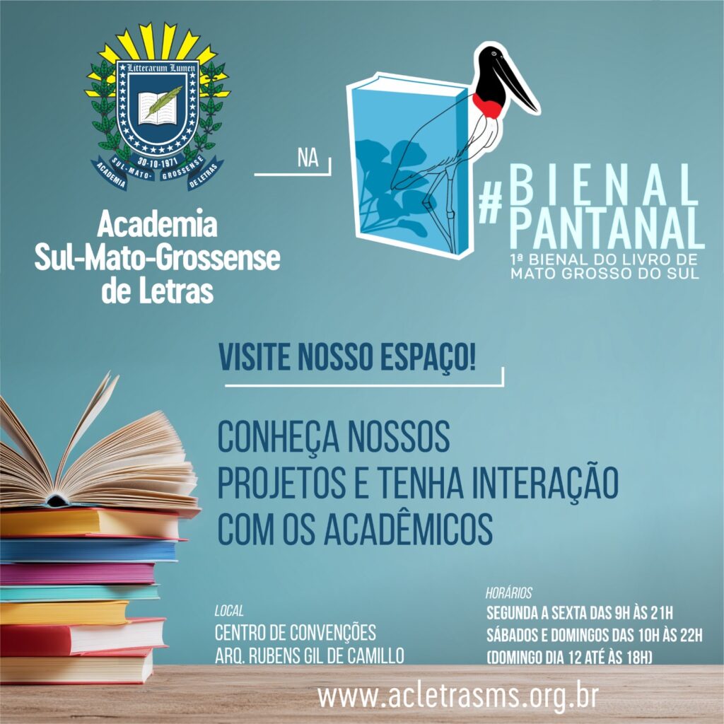 Realização especial do Leituras & Conversas, presença de acadêmicos na interação com o público e em várias programações: estas são algumas das atividades que a Academia Sul-Mato-Grossense de Letras estará promovendo durante a 1ª Bienal do Livro de Mato Grosso do Sul – Bienal Pantanal, com mais de uma dezena de imortais envolvidos com as atividades. A ASL estará em um estande com a presença de acadêmicos e seus livros para interação com o público leitor.