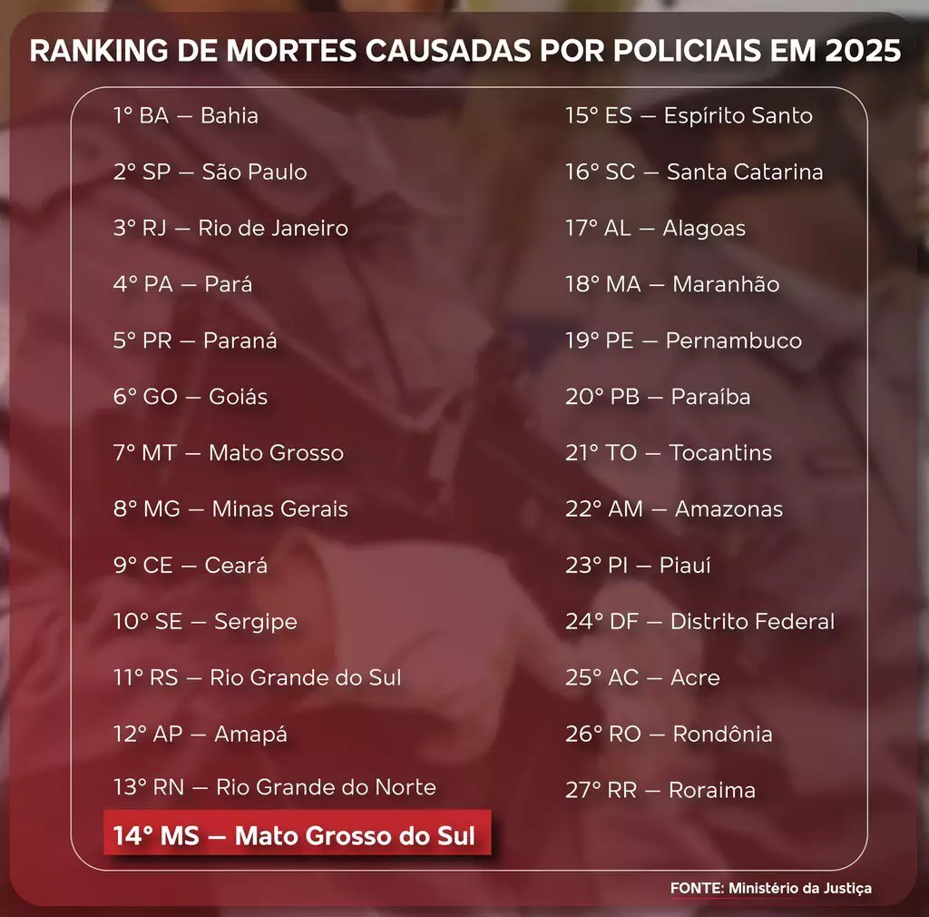 Mato Grosso do Sul é o 14º estado brasileiro com o maior número de mortes durante intervenções policiais. Nestes primeiros 37 dias de 2026, foram 10 óbitos registrados, seis deles numa mesma semana, em um intervalo de três dias.