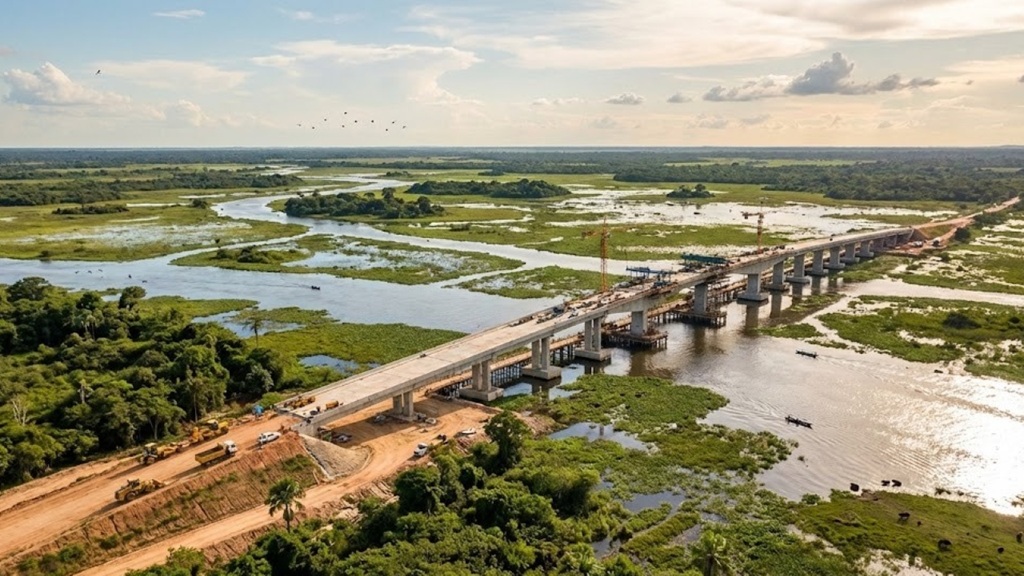 Uma barreira geográfica histórica no coração do Brasil está prestes a ser superada. Governos estaduais oficializaram a construção de uma mega ponte de concreto que será a primeira ligação física pavimentada entre Mato Grosso e Mato Grosso do Sul na região pantaneira, consolidando a promissora “Rota da Onça”.