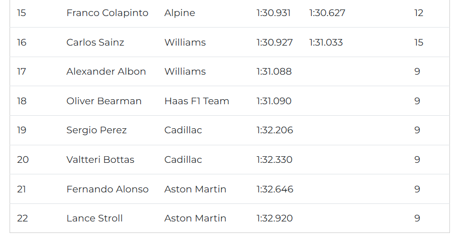 Sem dificuldades, Bortoleto levou a Audi ao Q3. Já o companheiro de equipe, Nico Hulkenberg, foi eliminado no Q2, assim como o tetracampeão Max Verstappen, surpreendido pelo novato Arvid Lindblad, que o empurrou para a zona de eliminação.