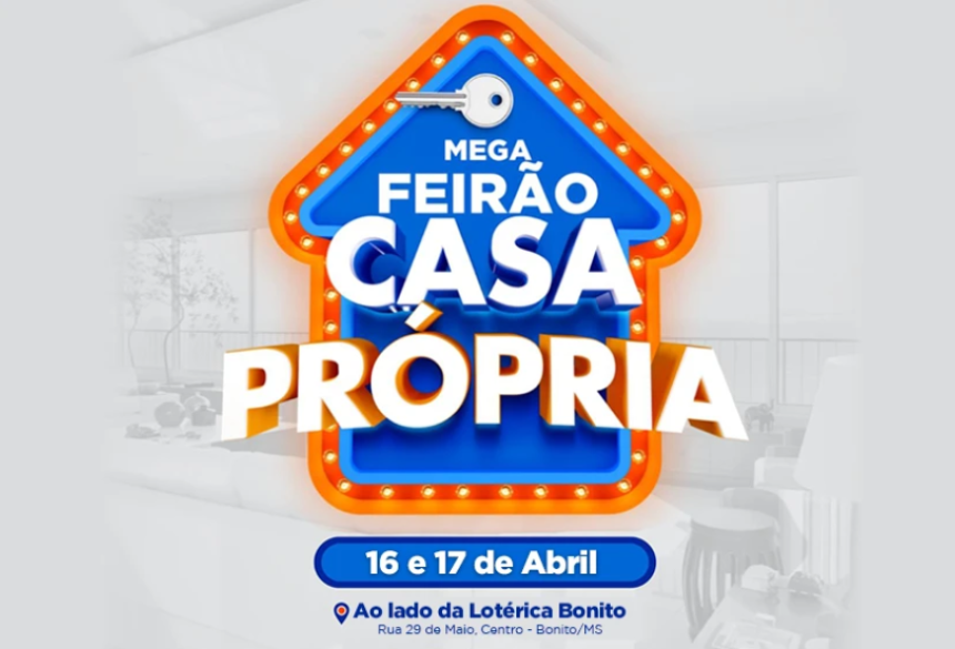 Pela primeira vez em Bonito, será realizado o Mega Feirão da Casa Própria, um evento que promete movimentar o setor imobiliário e facilitar o acesso à moradia para a população. A ação acontece nos dias 16 e 17 de abril, ao lado da Lotérica Bonito, na Rua 29 de Maio, região central da cidade, reunindo grandes parceiros e condições especiais para quem deseja sair do aluguel ou investir em imóveis.
