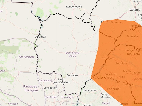 O aviso laranja, grau intermediário da escala do Inmet, é válido até as 18h desta sexta-feira (26). Em Mato Grosso do Sul, a onda de calor traz tardes muito quentes e madrugadas abafadas, típicas de massas de ar quente e seco reforçadas pela Alta Subtropical do Atlântico Sul, que bloqueia sistemas de chuva mais organizados.