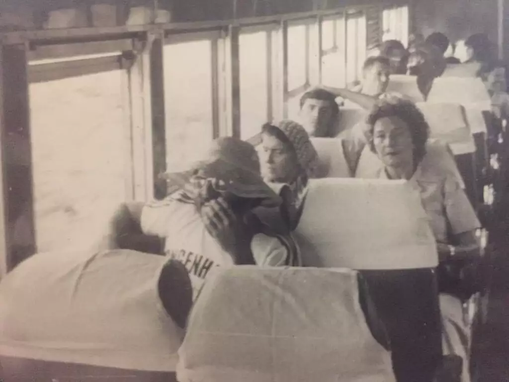 Interior do Trem do Pantanal, durante trajeto de Corumbá a Campo Grande, em 1973 (Foto: Rubem Weber)