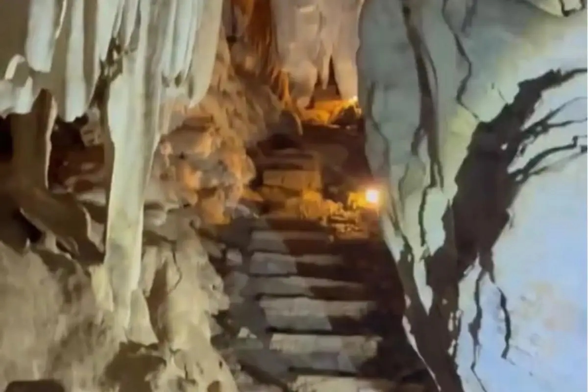 Em meio à natureza, turistas foram surpreendidos pela presença de duas cobras da espécie jiboia, que estavam dentro da Gruta Catedral, uma das mais visitadas em Bonito.
