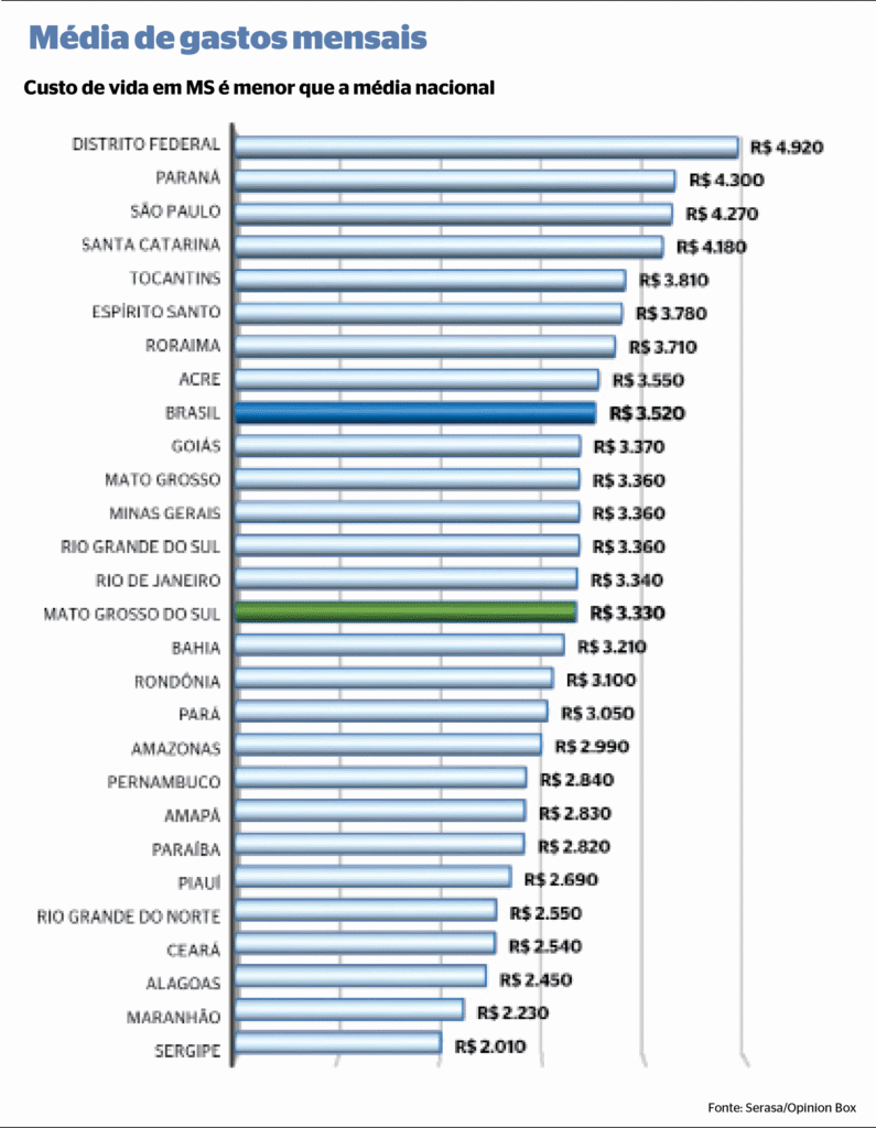 Home MancheteCusto de vida em MS é 5% menor que a média nacional, aponta Serasa