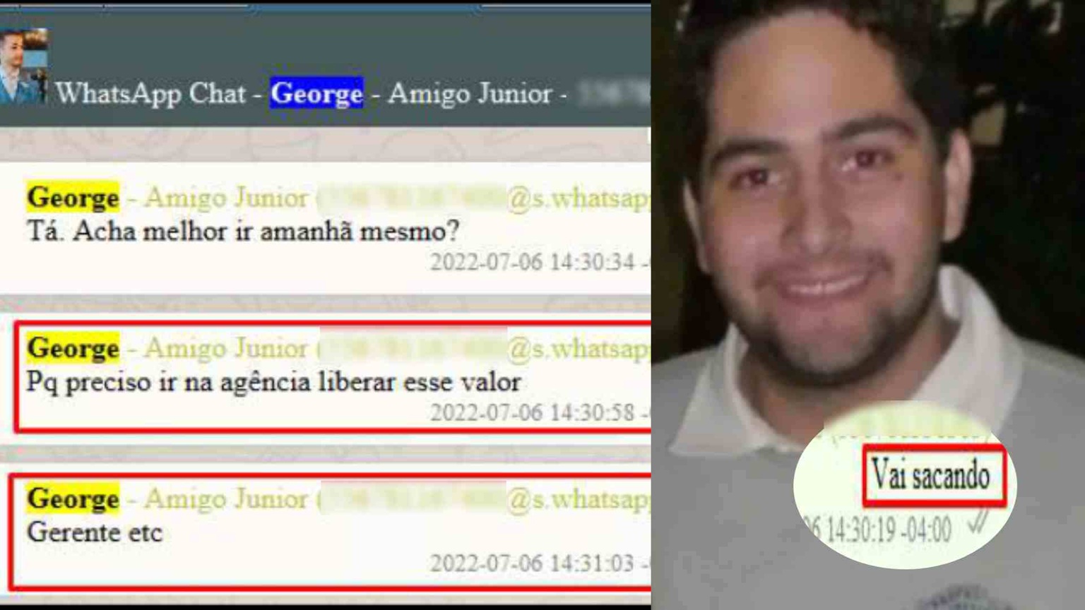 Na sequência, George se mostra preocupado, pois tem que ir até a agência para conseguir sacar o alto valor: “Preciso ir na agência liberar esse valor […] gerente etc”.