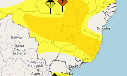 Não se descartam temporais, com chuva de intensidade moderada a forte, podendo ser acompanhados de raios e rajadas de vento.