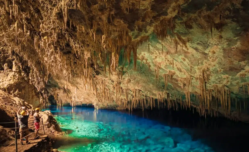 - Cavernas com lagos cristalinos e águas intensamente azuis;