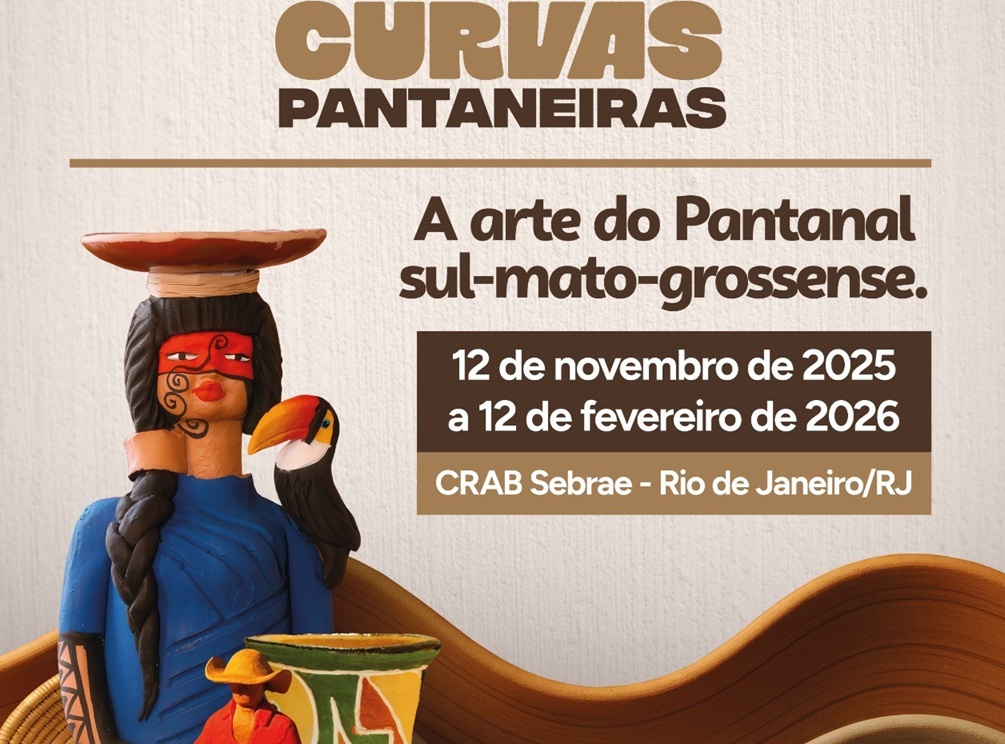 A mostra é uma realização do Sebrae/MS e do CRAB/RJ, com parceria da Fundação de Cultura de Mato Grosso do Sul (FCMS), que realizará o transporte das peças. Com curadoria da artista visual Buga Peralta, a exposição traduz a paisagem e o imaginário pantaneiro em obras feitas de cerâmica, madeira, fibras, tecidos, bordados e papel machê. São peças que revelam a fluidez das águas, a leveza da fauna e o ritmo das comunidades ribeirinhas — símbolos de uma cultura que se reinventa sem perder suas raízes.