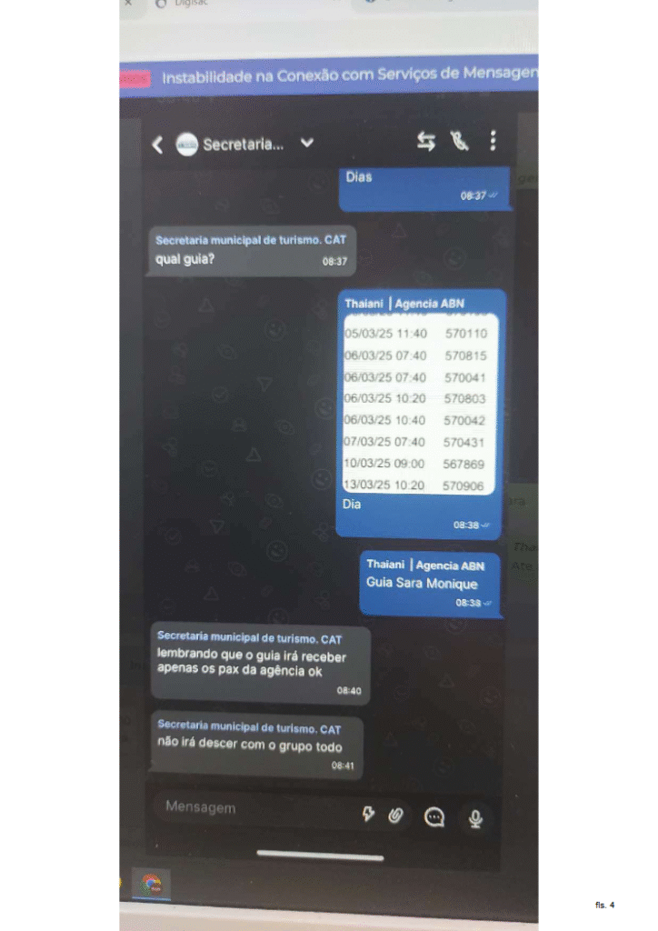 O sistema supostamente implantado pela Secretaria de Turismo e pela Agência ABN beneficiava alguns guias, com criação de grupos e horários não licenciados. Ainda de acordo com o texto, a suposta fraude “explora o trabalho de guias CPNJ, e obriga as agências a não optarem por quais guias prestarão o serviço ao visitante”.