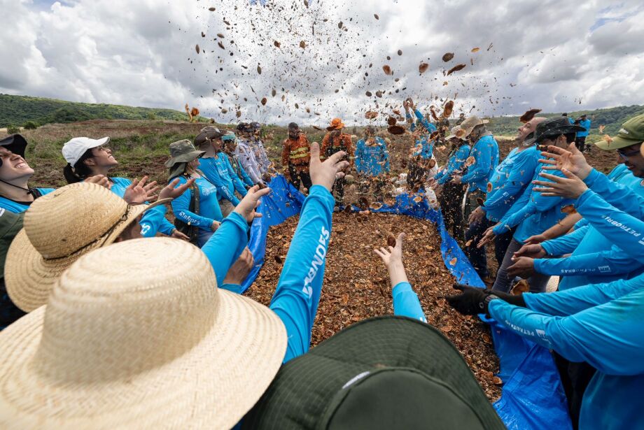 A semeadura é realizada pelo Instituto Taquari Vivo (ITV), em parceria com a empresa Restaura, utilizando mais de quatro toneladas de sementes reunidas pela Rede Flor do Cerrado.