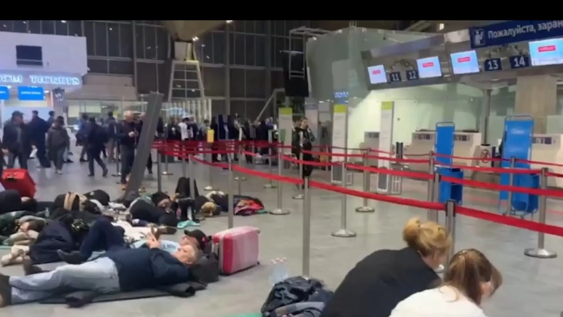 Passageiros dormem no chão após ameaça de drones em aeroporto na Rússia