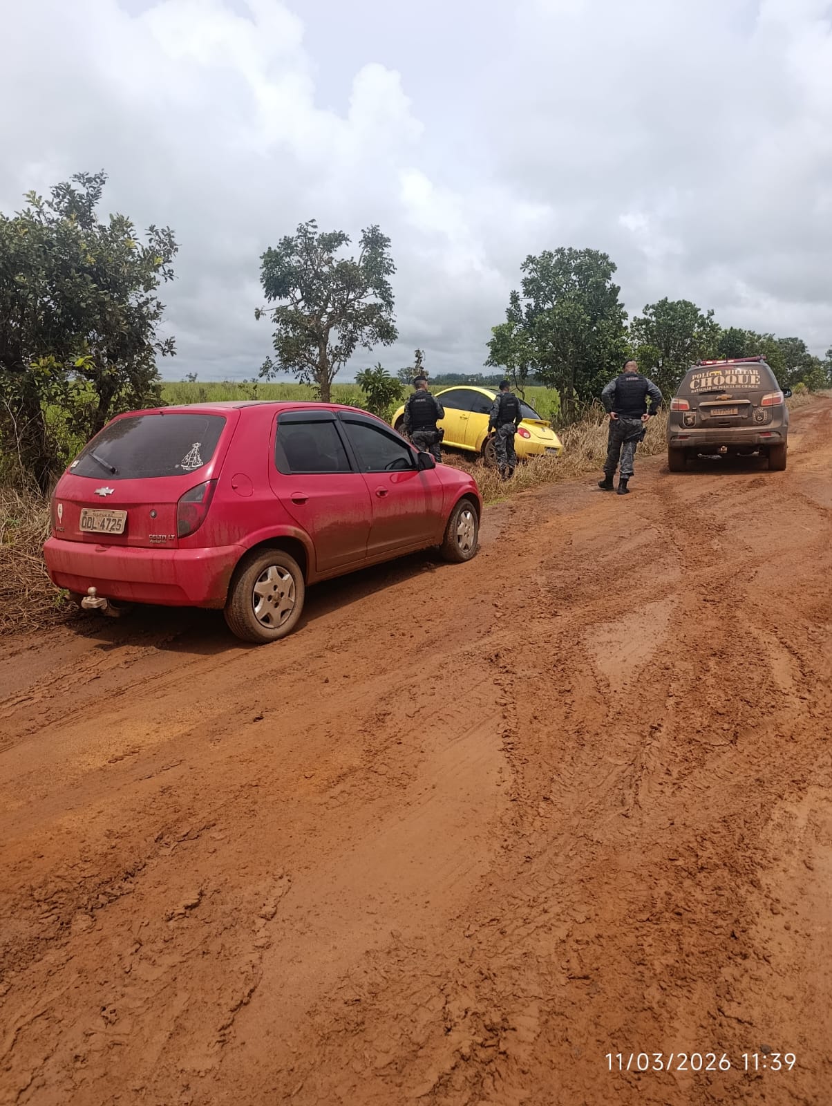Na sequência, os policiais foram ao encontro e avistaram os veículos retornando a Campo Grande. Foram ministradas ordens de parada obrigatória, porém, nenhum dos condutores atendeu e houve a perseguição por vários quilômetros até que o Certa parou e os ocupantes, uma mulher e um rapaz, se entregaram. No porta-malas, foram recuperados um aparelho de ar-condicionado, duas mochilas, uma antena do tipo Starlink e uma carteira pertencente às vítimas.