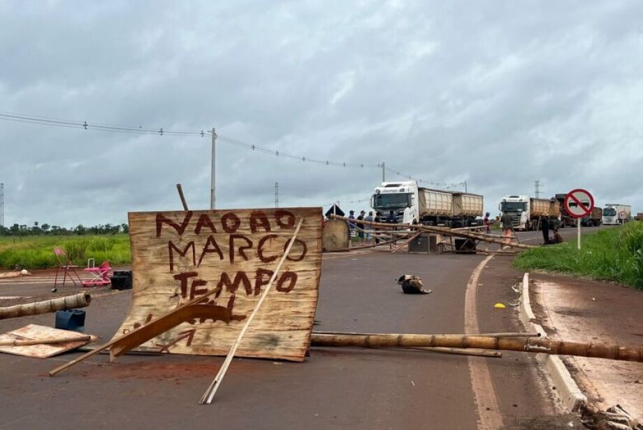 Em meio à votação da constitucionalidade do marco temporal no Supremo Tribunal Federal (STF), indígenas ontem bloquearam parcialmente a rodovia MS-156, em Dourados. O grupo protestava contra a tese do marco temporal para demarcações de terras.