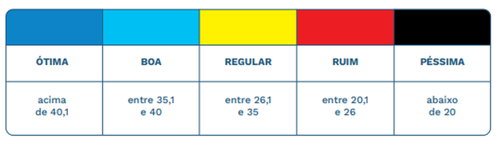 Segundo o relatório, a pontuação varia de péssima (menor de 20) a  ótima (maior que 40). No entanto, no Estado, a qualidade da água passou a maior parte do ano em regular (entre 26 e 35).