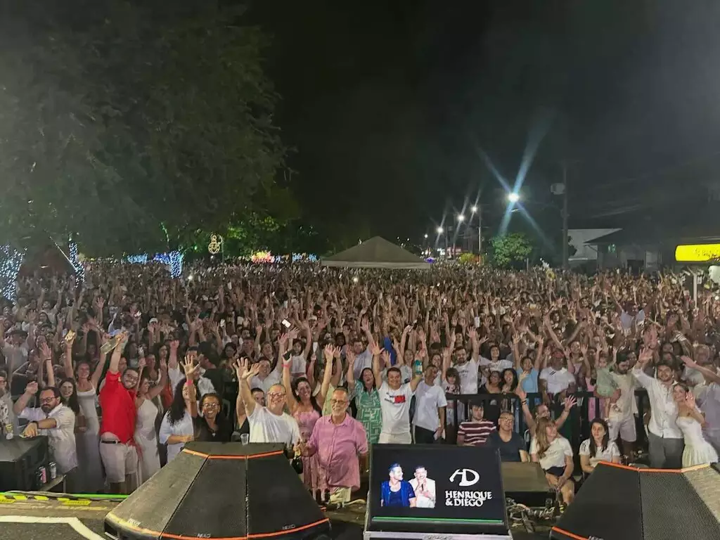 O ponto alto da noite foi a apresentação da dupla sertaneja Henrique e Diego, a mais aguardada pelo público. Com um repertório de sucessos, como “Top do Verão”, “Zuar e Beber”, “Canudinho” e “Festa Boa”, os artistas entraram no palco logo após a contagem regressiva e marcaram a virada do ano em clima de festa.
