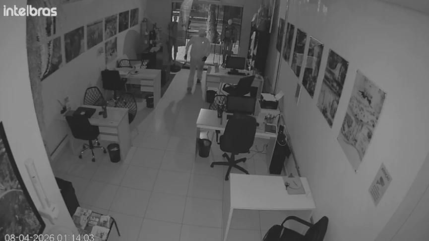 As câmeras de segurança registraram o momento em que, por volta da 1h da madrugada, um indivíduo arremessa um pedaço de concreto contra a porta de vidro, conseguindo quebrá-la e acessar o interior da agência. As imagens mostram ainda que o suspeito agiu de forma direta, dirigindo-se ao local onde ficava o livro caixa da empresa, de onde subtraiu aproximadamente R$ 200,00.